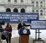 AIバブル崩壊を防ぐため、AIデータセンターの建設を3年間停止する法案をNY州議会が発表する。